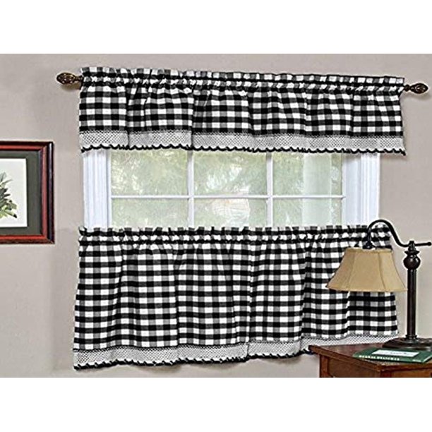 Poplin Gingham Checkered Window Curtain 56 Inch Wide Black And White Walmart Com Walmart Com from i5.walmartimages.com 5 out of 5 stars. Priya kitchen window curtain tier pair. The set includes 1 valance and 2 tier curtains in a variety of colors which will coordinate with any home decor. The fabric though light in feel is very substantial. Mainstays elevated solid 3 piece kitchen curtain set, 54 x 36, black. Ellis curtain harrington rod pocket curtain panel pair. Ratings, based on 356 reviews. The window drape valance curtain can be adjustable according to the height of your window.